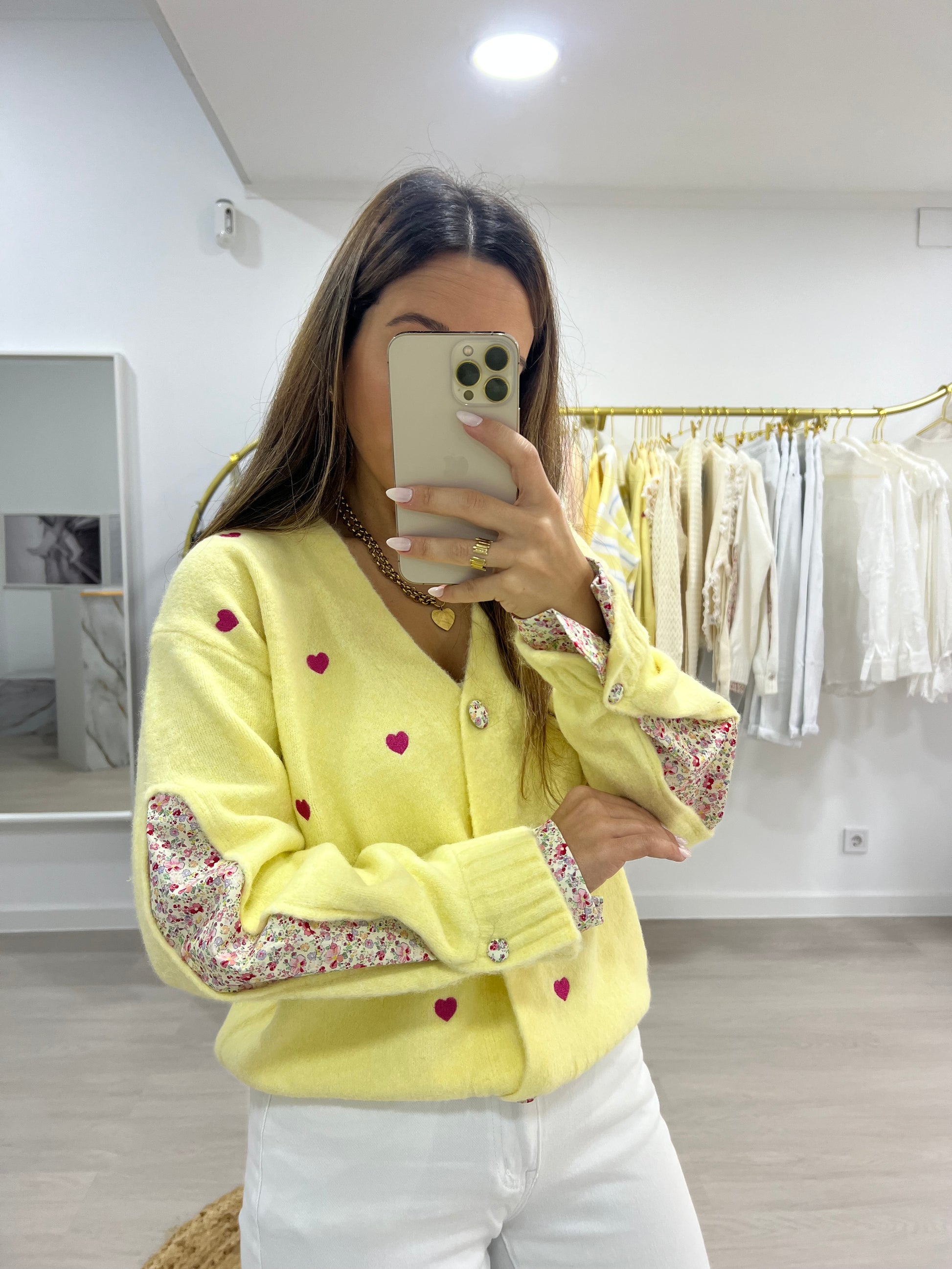 Casaco de malha romântico.