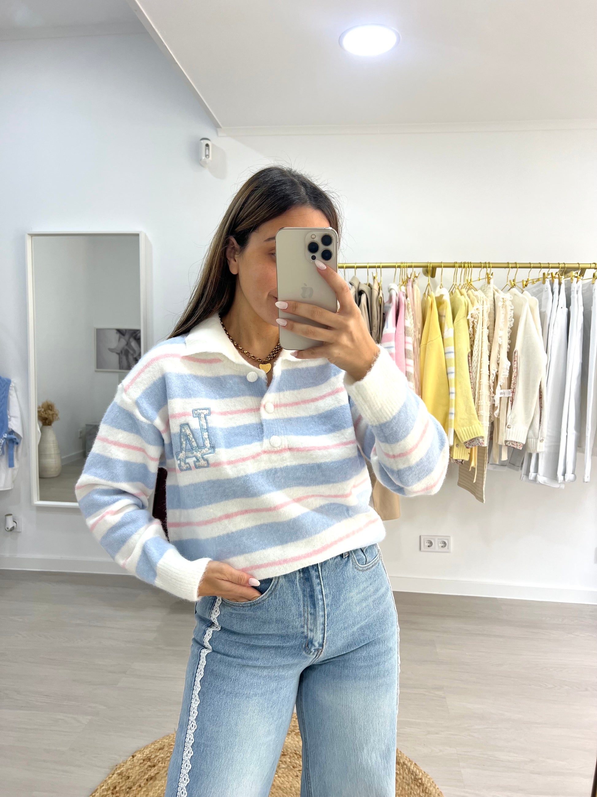 Polo de malha macia e aconchegante com pormenor de letra bordada.